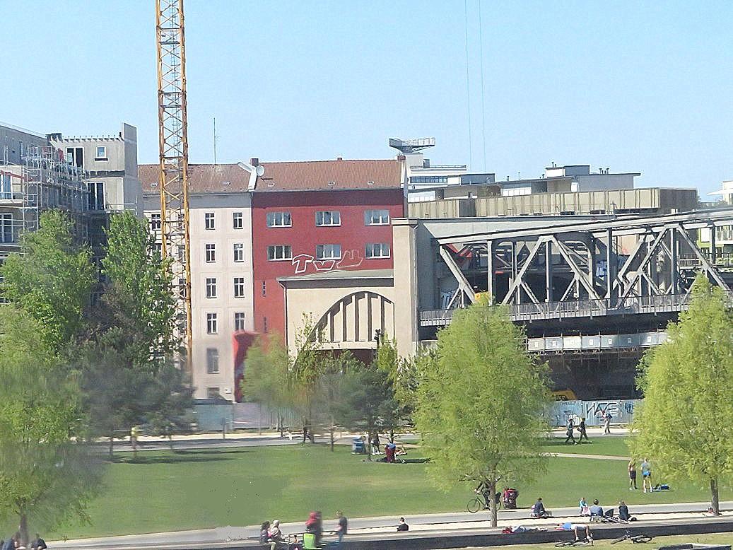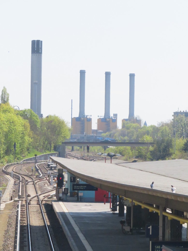 Im Hintergrund das Kraftwerk Wilmersdorf