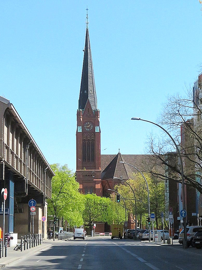 Die Lutherkirche ist eine Backsteinkirche am Dennewitzplatz