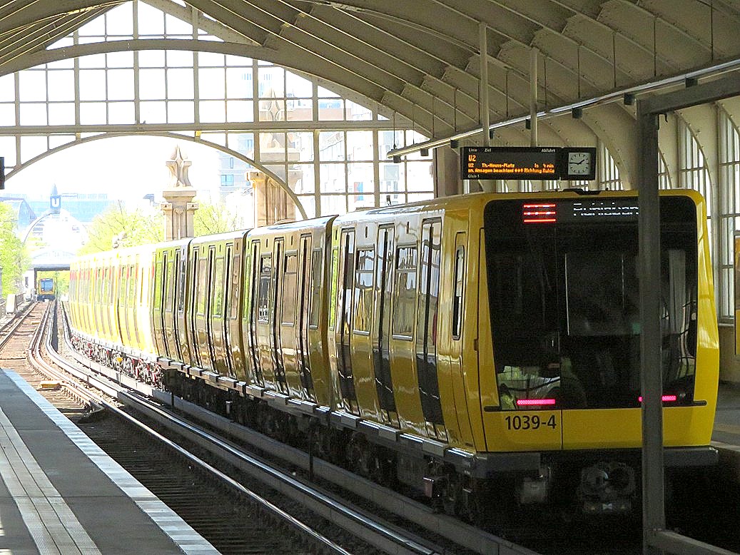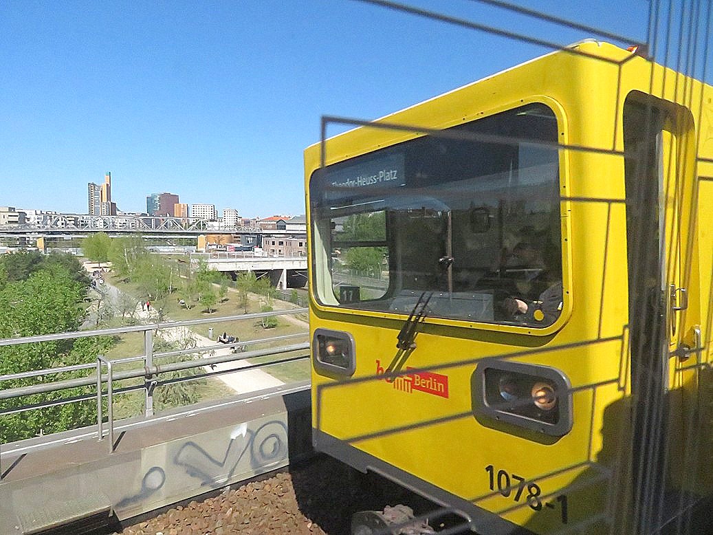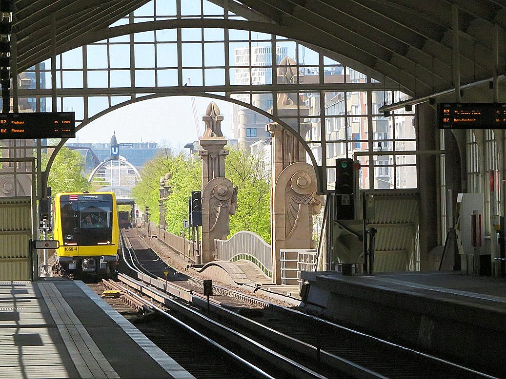 Vom U-Bahnhof Gleisdreieck kommend fahren die Züge der U1 und U3 durch das
