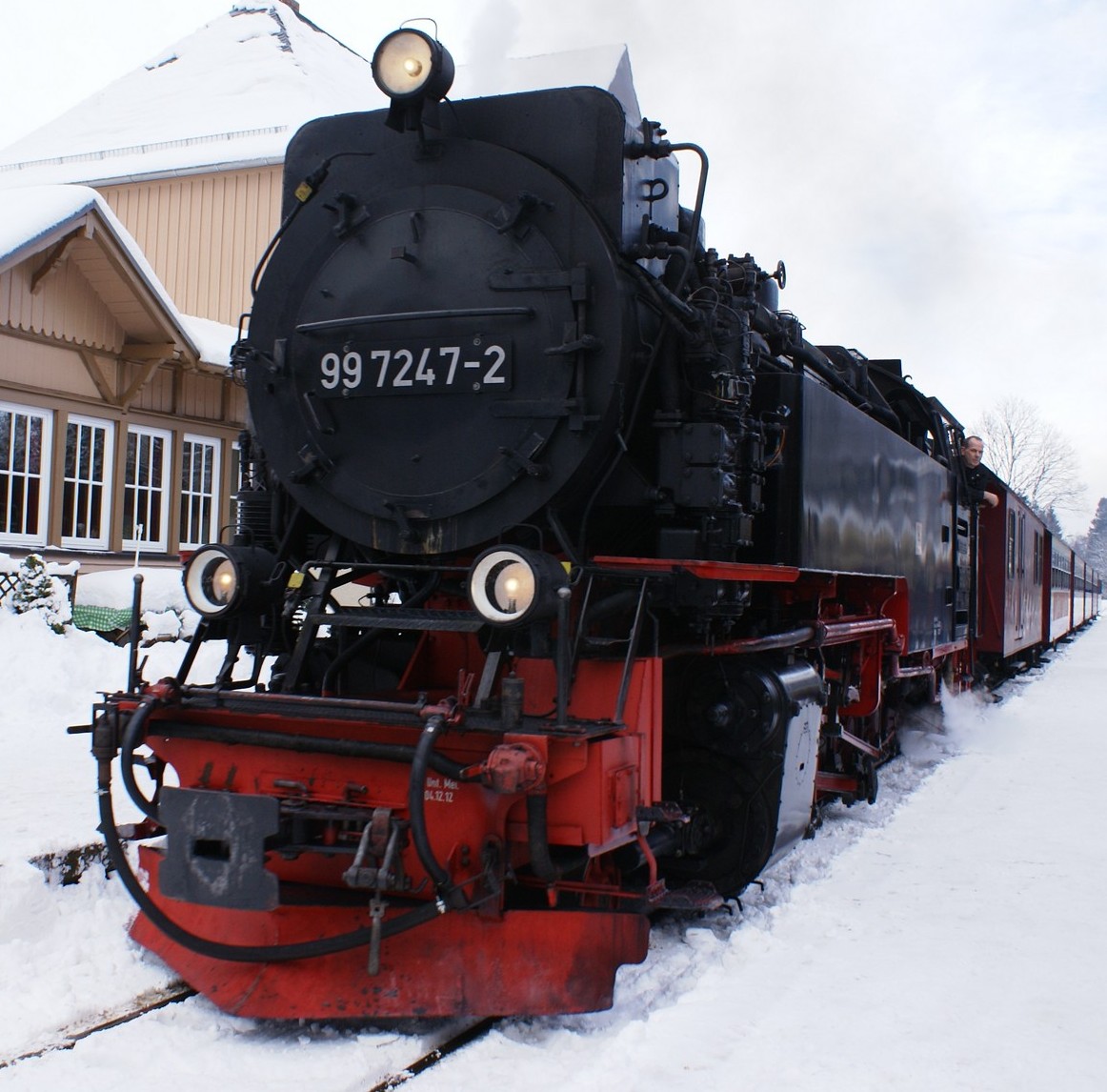 Dringend zu empfehlen ist für Autofahrer die Mitnahme von Schaufel und Besen zur Reinigung eines Parkplatzes! Der Winterdienst ist nämlich micht die besondere Stärke der Stadt Wernigerode!!! Bahnhof Drei Annen Hohne 99 7237 mit dem 8920 aus Nordhausen 99 7247 mit dem 8903 aus Wernigerode 99 7732 mit 8932 vom Brocken |