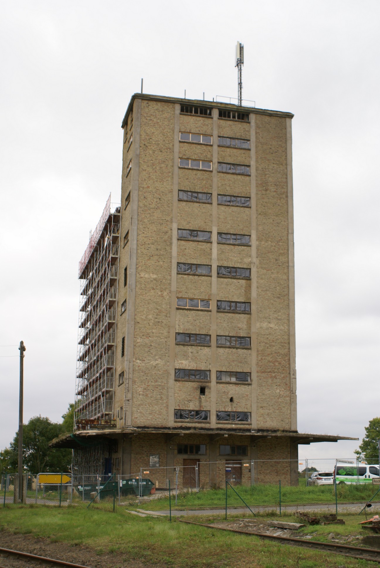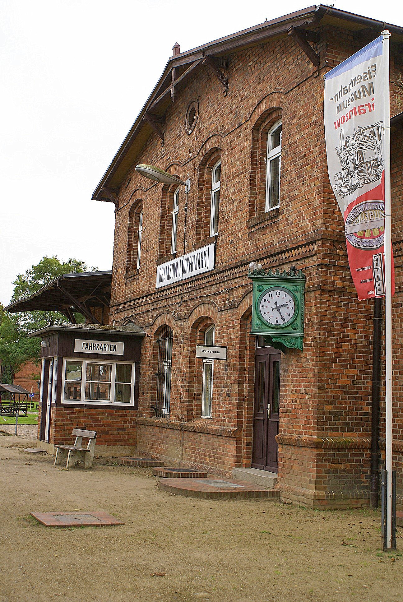 von der Kreisbahn Schönermark-Damme als Fachwerkgebäude erbaut.