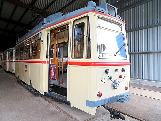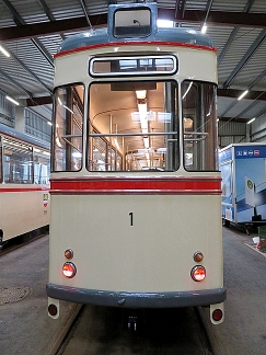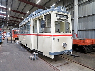 ![]() Fahrschul- und Schneepflugtriebwagen Betriebsnummer: 554 Hersteller: Gotha/LEW Typ: ET 54 Baujahr: 1955 (1974: ex Tw 49 - 1984: ex ATw 434) |