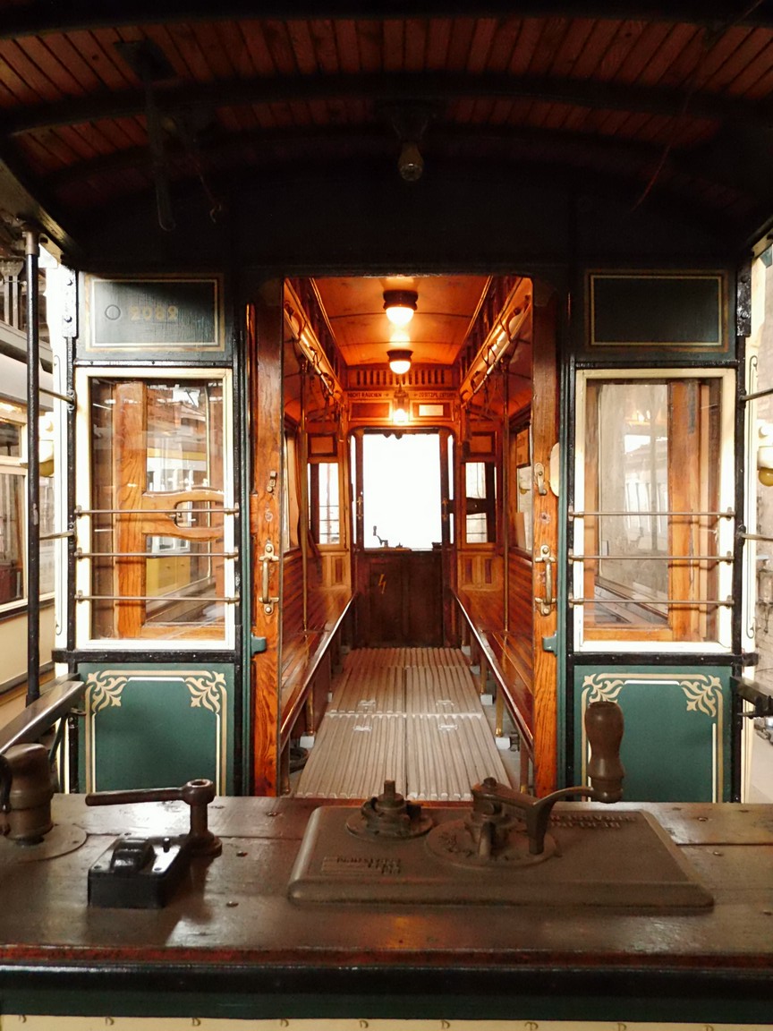 ![]() Innenansicht des Triebwagen 2082 der Großen Berliner Straßenbahn |
