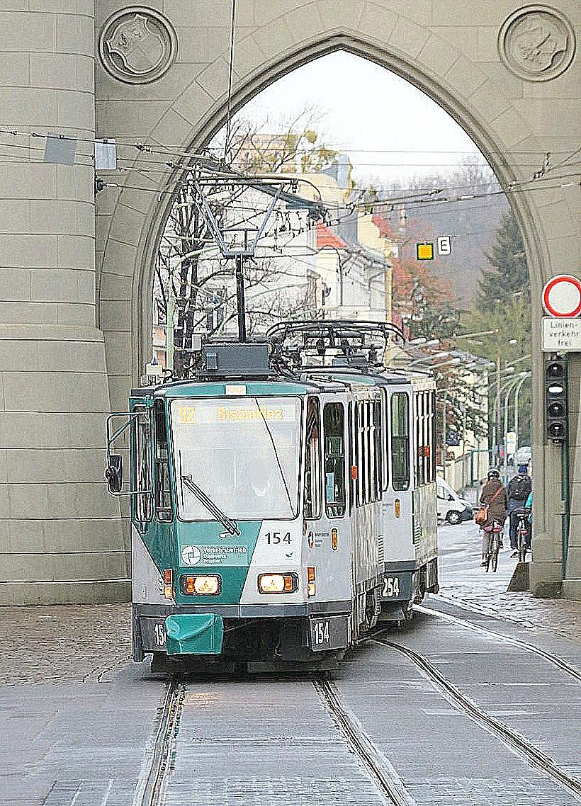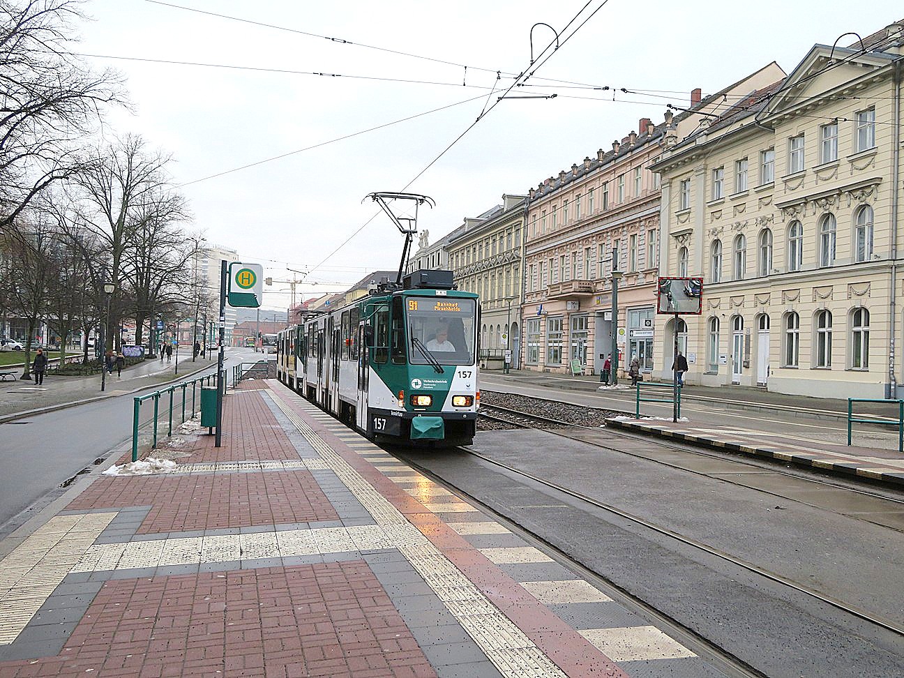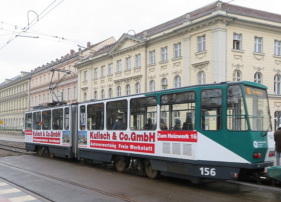 Am Platz der Einheit verkehren alle Straßenbahnlienien der Stadt